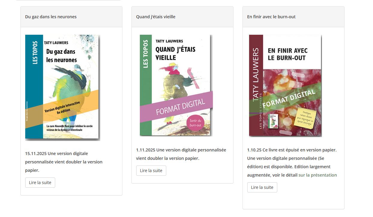 En 2026, dès qu'ils seront épuisés, les livres en version papier ne seront pas réédités sous cette forme, comme cela est fait depuis 30 ans, mais offerts à la vente sous forme digitale personnalisée (pdf).