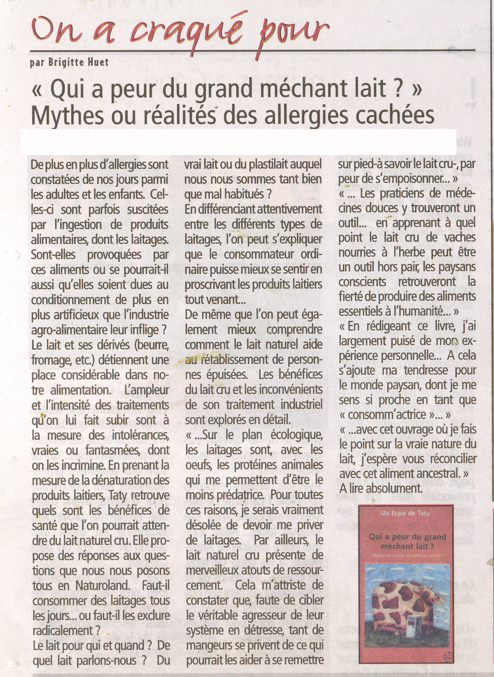 Faut-il supprimer le lait?par Michèle Rager dans Flair juin 2007